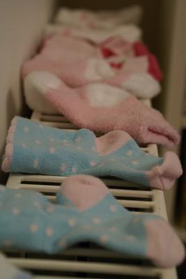 Do you feel like half of your life is spent picking up tiny little socks you find all over the house, and trying to match them up after washing them? A mom of 2, blogging at Proverbs 31 Woman In Training had some suggestions for keeping socks together. ***Update - she's since taken down her blog.*** In her blog post regarding sock tips she suggests washing all your socks, including all your kids' tiny little socks, in a mesh bag. I think this is a fabulous idea, because I know I feel like my washing machine eats baby socks sometimes, and this would prevent that. In addition, she suggests buying all similar socks, a different style or color for each child, so you don't have to strain to match them -- but any two socks can be used together and sorted easily after washing for putting away. I have done that for my kids, to a certain extent. They each still have some "special" socks, but each also has some general everyday wear socks, and even if one gets lost or gets a hole they can still just grab another that matches and they are good to go. So what about you? How do you keep track of all those little socks? Any tips to share? Photo by dansky |